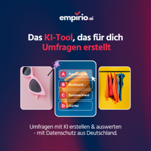 Online-Umfrage.org ist ein Projekt von empirio.ai - dem KI Umfrage-Tool. Du möchtest im Handumdrehen eine Online-Umfrage erstellen? Dann probier' empirio.ai kostenlos aus.